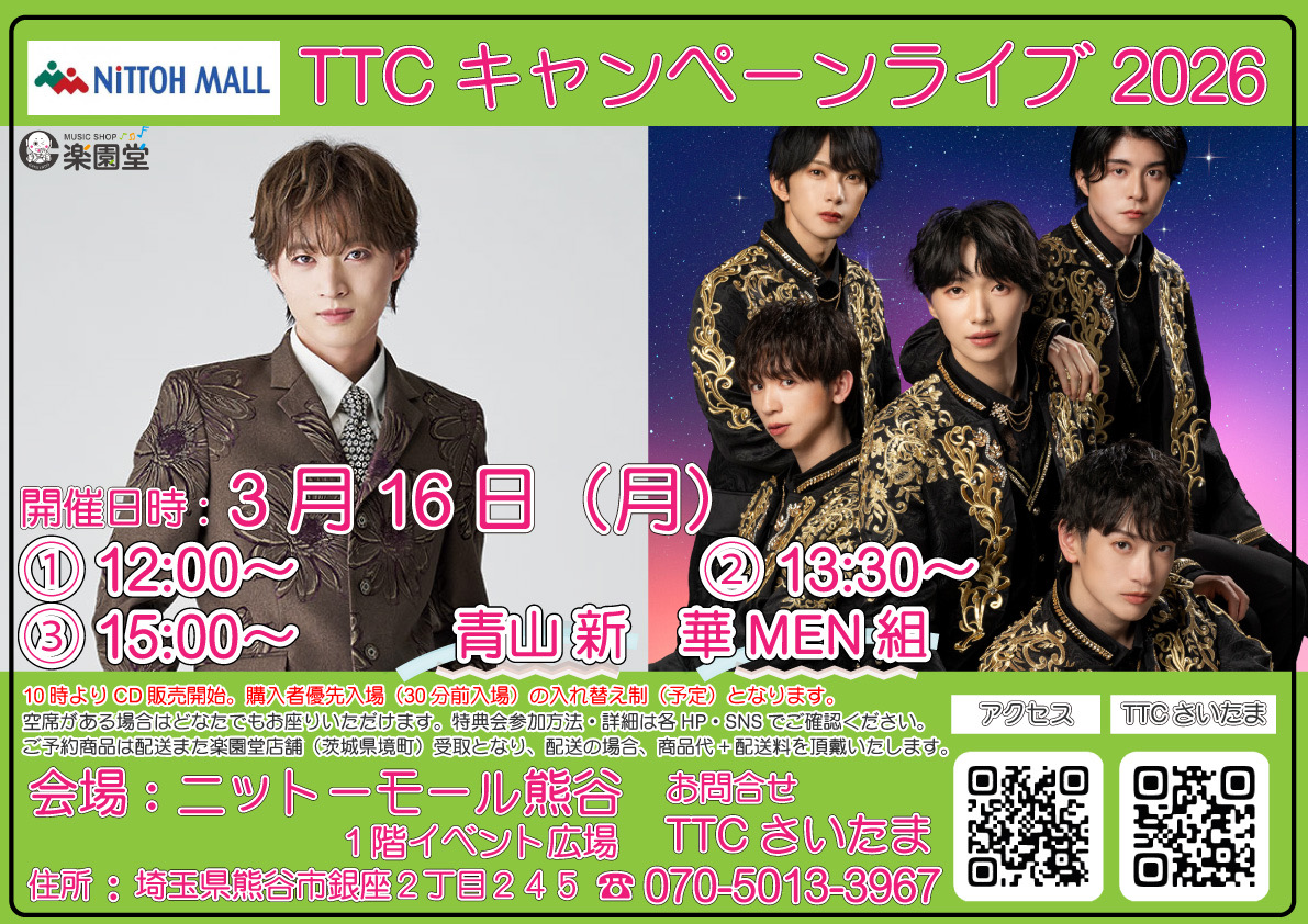 TTCキャンペーンライブ2026 「ニットーモール熊谷」出演!