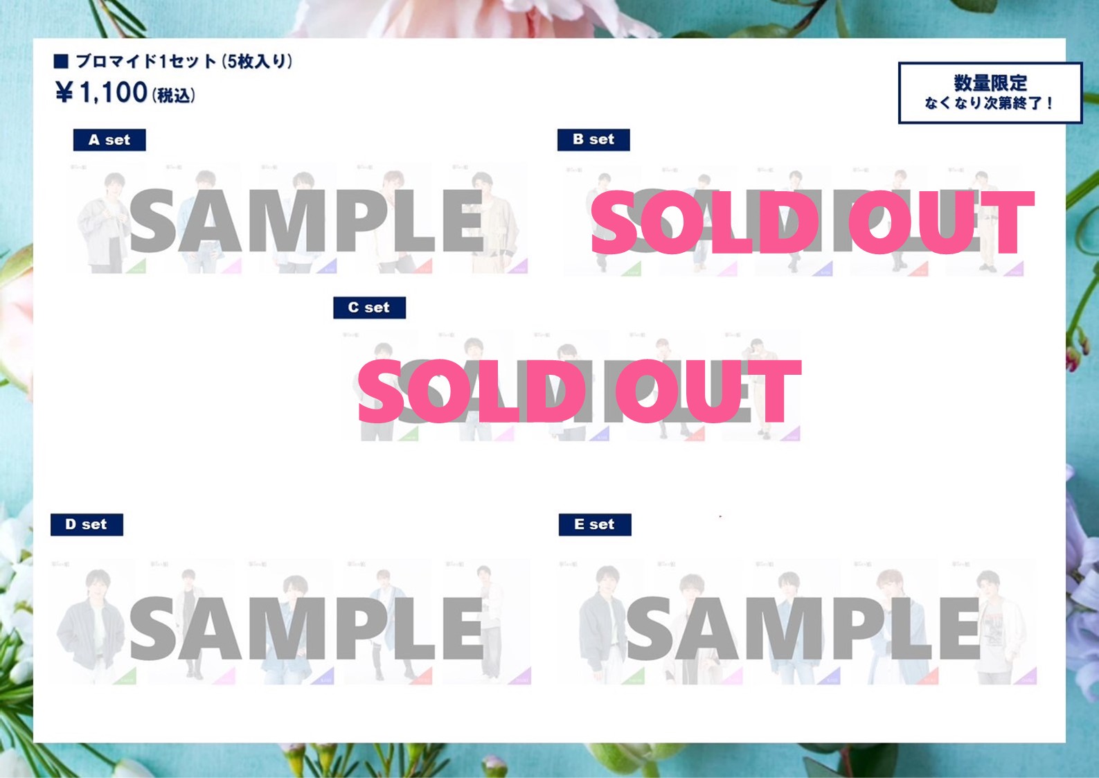 ⑤ブロマイド 5人セット(メンバー各1枚・全5枚入り)3種販売:1セット1,100円(税込)数量限定