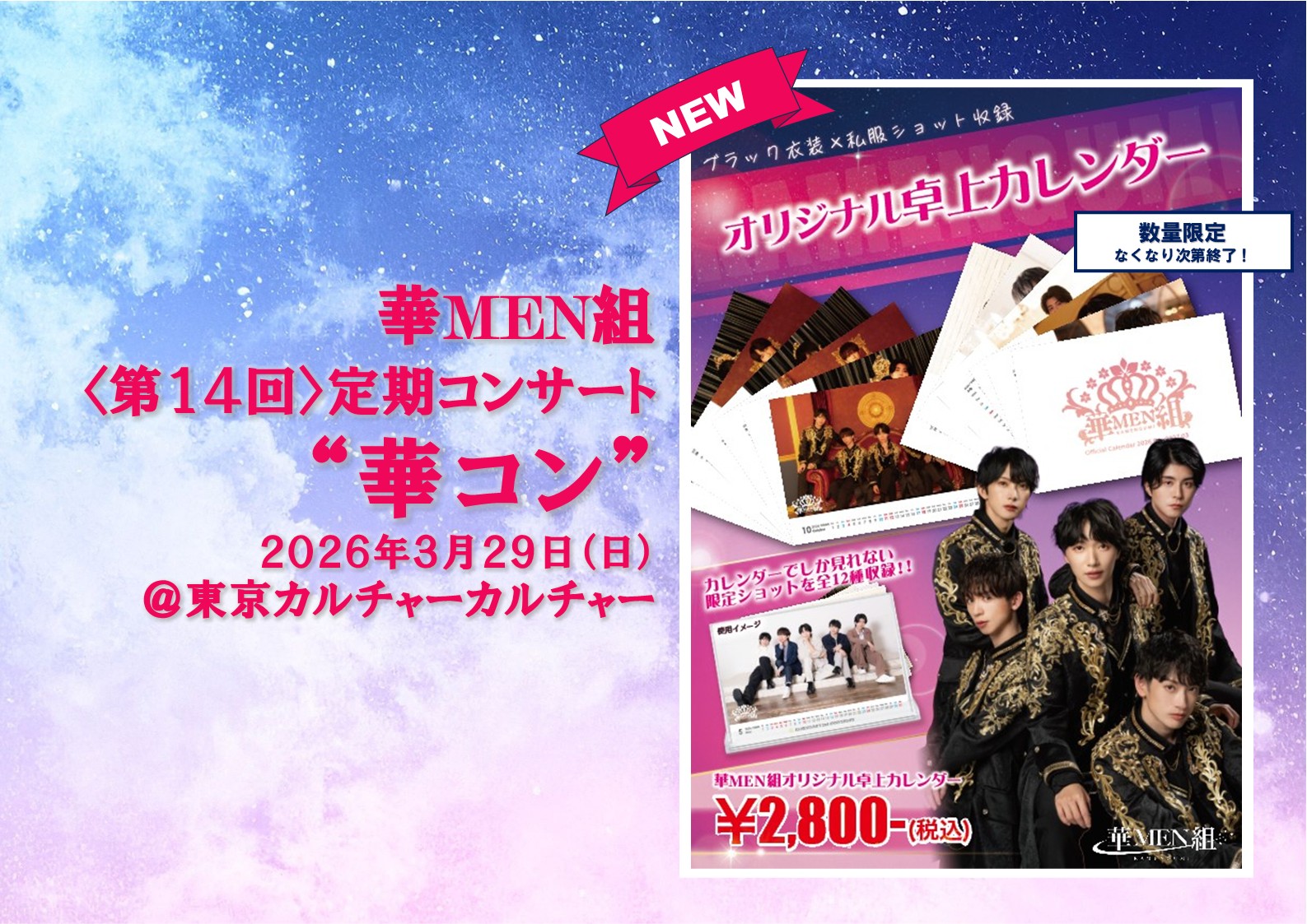 「華MEN組〈第14回〉定期コンサート”華コン”」オリジナルグッズ販売に関してのお知らせ