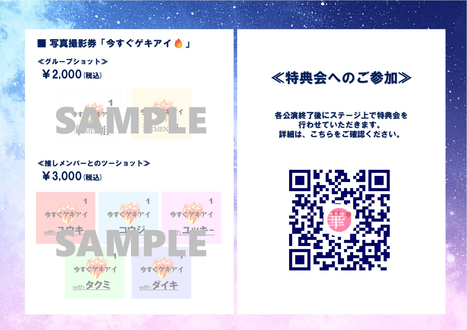✿《推しメンバーとのツーショット》写真撮影券「今すぐゲキアイ🔥」[1枚3,000円(税込)]⇒特典券1枚につき写真1枚撮影