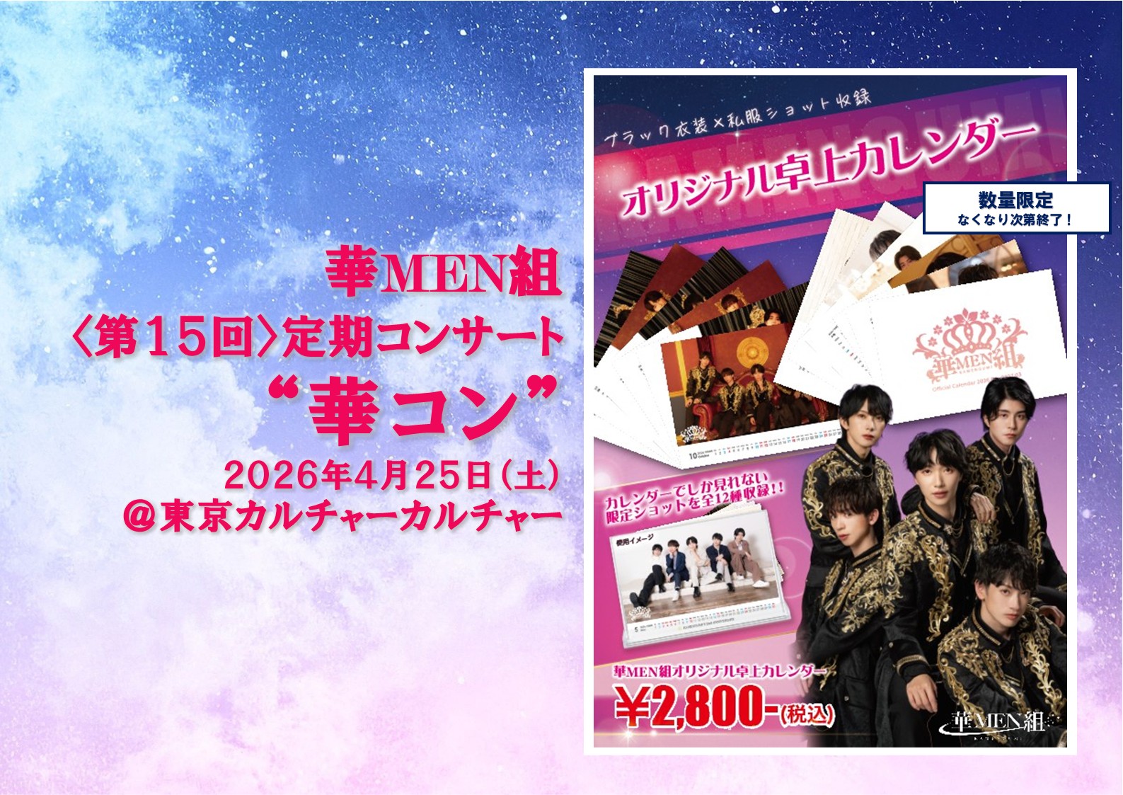 「華MEN組〈第15回〉定期コンサート”華コン”」オリジナルグッズ販売に関してのお知らせ